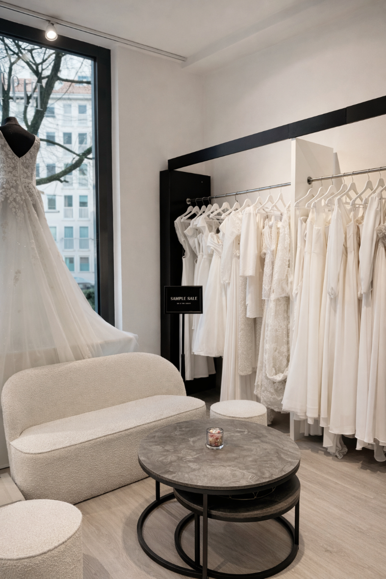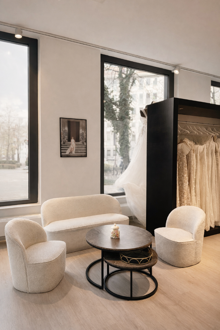 München war die klare Wahl. Hier konzentriere ich mich auf exklusive Brautmode, weil ich davon überzeugt bin, dass jedes Brautkleid die Persönlichkeit der Frau unterstreichen sollte. Mir geht es nicht darum, dass Frauen einfach ein Kleid finden – sondern dass das Kleid sich der Frau anpasst, nicht umgekehrt.